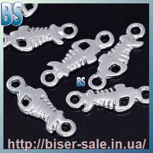 Коннектор, 2 отвору, колір античне срібло, 19х6,5 мм