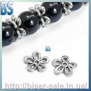 Бусина металева, колір срібло, 9х8х3,5 мм