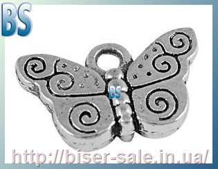 Кулон-Підвіска, метелик, колір античне срібло, 10х15х3 мм