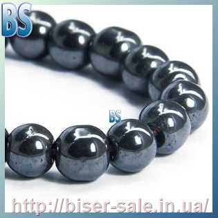 Намистина гематитова, колір чорний, 8 мм