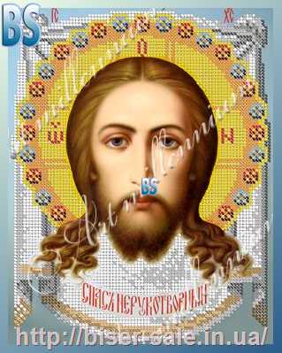 Схема, часткова вишивка бісером, атлас, ікона "Спас Нерукотворний"