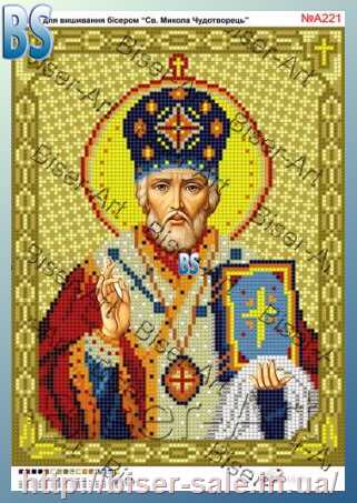 Схема, часткова вишивка бісером, габардин, ікона "Святий Микола"