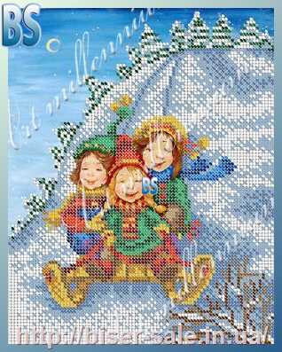 Схема, часткова вишивка бісером, габардин, "Катання на санчатах" (художник Katya Dudnіk)