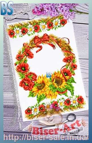 Рушник на Спаса, часткова вишивка бісером, габардин "Веночек із квітами"