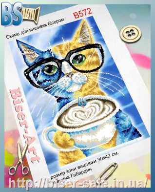 Схема вишивки бісером (хрестиком) Кіт з кавою (B572)