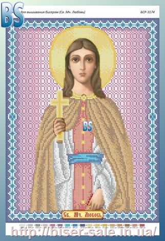 Схема, полная вышивка бисером, габардин, "Св. Муч. Любов"