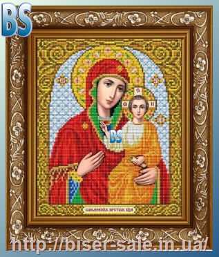 Схема, часткова вишивка бісером, габардин, ікона "Пресвята Богородиця "Трьох Радостей"