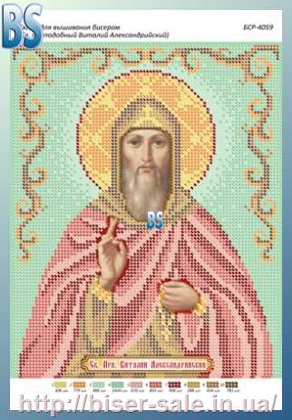 Схема, часткова вишивка бісером, габардин, ікона "Св. преп. Віталій Олександрійський"