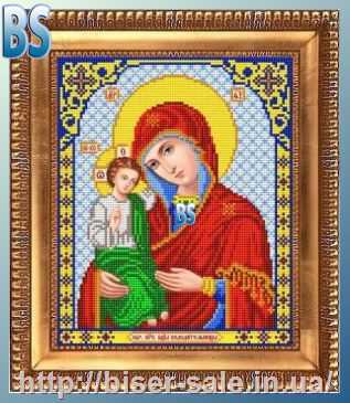 Схема, часткова вишивка бісером, габардин, ікона "Пресвята Богородиця "Спорительница Хлібів"