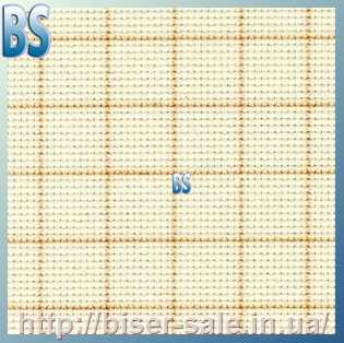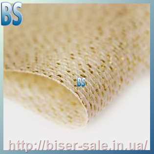 Канва Аїда №14, ширина 1,5 м, колір кремовий із золотим люрексом