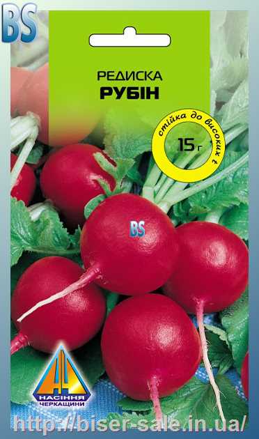 Редиска Рубін (15г), ранньостигла, коренеплоди масою 11-28г
