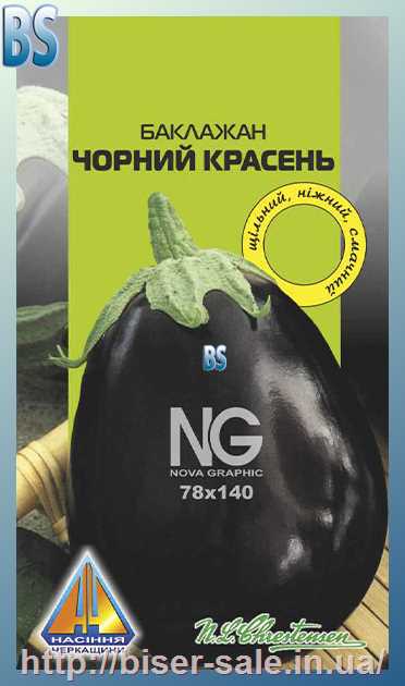 Баклажани Чорний красень (0,3г), ранньостиглий, кущ висотою до 0,6м, плоди масою 150-200г