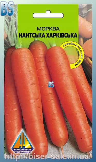 Морква Нантська Харківська (10г), середньостигла, коренеплід 10-18см, діаметром 3,5-4,5см, масою 142-150г