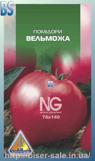 Помідори Вельможа (0.2г), середньостиглий, кущ висотою до 0,5м, плоди масою 300-400г