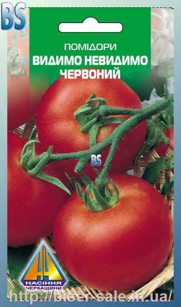 Помідори Видимо-невидимо червоні (0.2г), ранньостиглий, кущ висотою до 0,7м, плоди масою до 300г