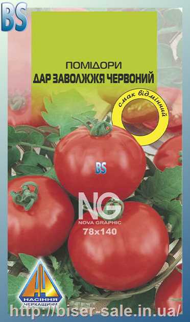 Помідори Дар Заволжжя червоний (0,3г), середньоранній, кущ висотою 0,5-0,7м, плоди масою до 100г