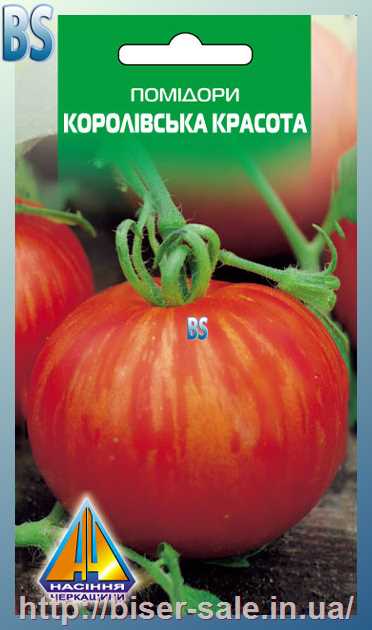 Помідори Королівська красота (0.1г), середньостиглий, кущ висотою 1,3-1,5м, плоди масою до 150г