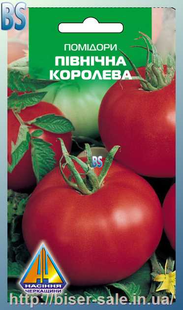 Помідори Північна Королева (0,1г), ранньостиглий, кущ висотою 0,5-0,6м, плоди масою до 150г
