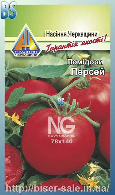 Помідори Персей (0.2г), середньостиглий, кущ висотою 0,5-0,6м, плоди масою 130-180г