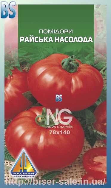 Помідори Райська Насолода (0,1г), ранньостиглий, кущ висотою до 1,5м, плоди масою 15-180г