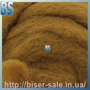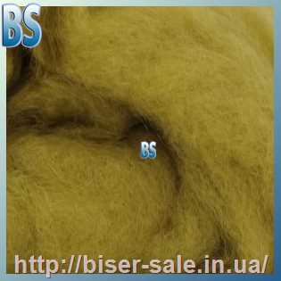 Вовна (шерсть) для валяння, Новозеландська, меринос, колір гірчичний, 50 г