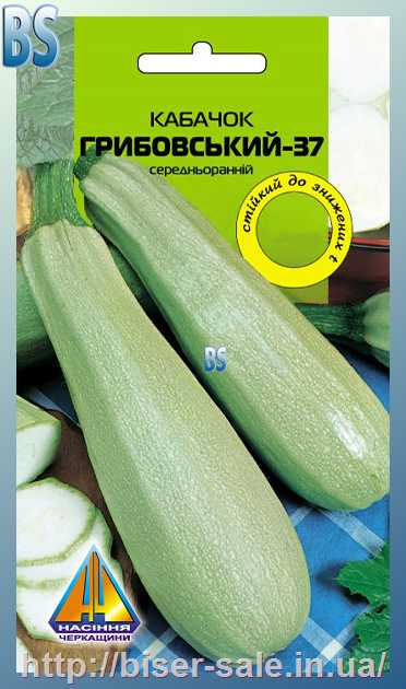 Кабачки Грибовський 37 (15г), середньоранній, кущовий, маса плоду 450-1300г