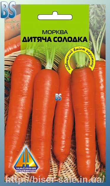 Морква Дитяча солодка (10г), середньопізня, коренеплід 16-21см, діаметром 2,7-3,5см, масою до 200г