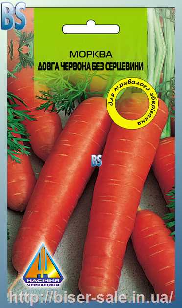 Морква Довга червона без серцевини (10г), пізньостигла, коренеплід до 25см, масою 180-220г