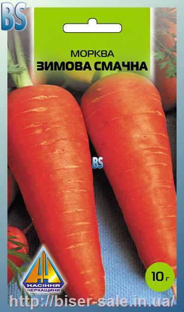 Морква Зимова смачна (10г), пізньостигла, коренеплід 16-20см, масою 80-110г