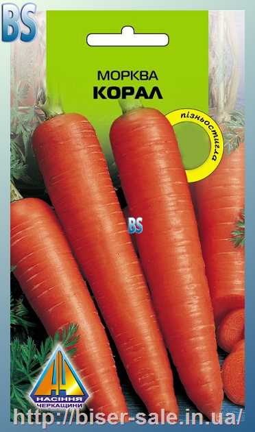 Морква Корал (10г), пізньостигла, коренеплід 18-22см, масою 230г