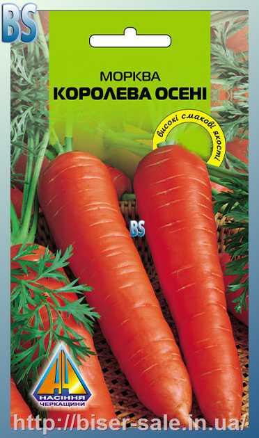 Морква Королева Осені (10г), пізньостигла, коренеплід до 25см, масою 180-220г